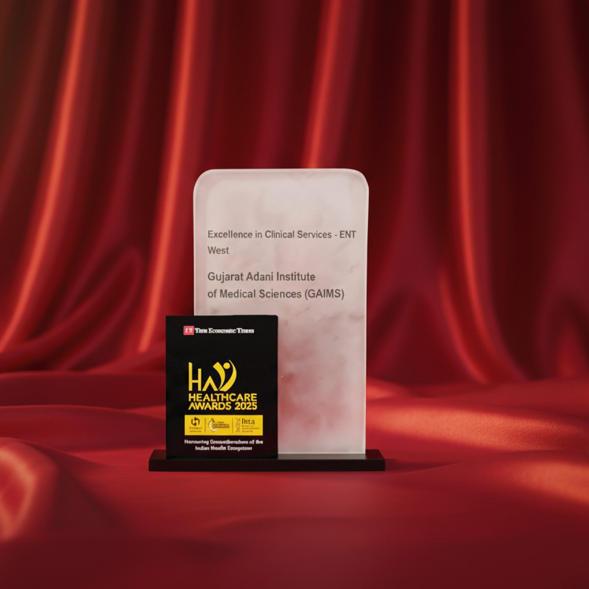 Gujarat Adani Institute of Medical Sciences (GAIMS), Bhuj, proudly earned two prestigious honours at the ET Healthcare Awards 2025, marking a moment of great pride for the institution.