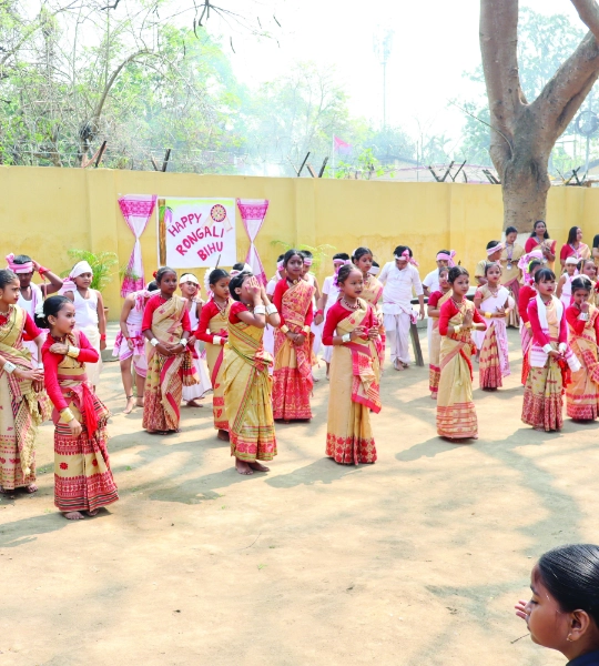 The school follows the Assam State Board curriculum. The infrastructure has been updated with painted walls, potable water, and sanitation facilities. Additionally, the school has been assisted to expand its learning environment with five new classrooms and a hall. These spaces are equipped with educational aids, sports and music equipment, library books, and smart TVs.