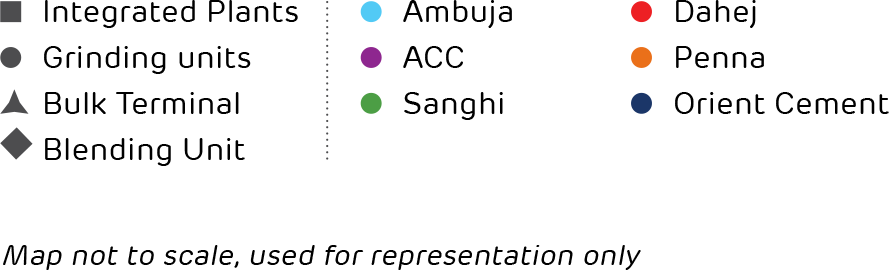 *The Company had a cement capacity of 88.9 MTPA during the reporting period. The successful completion of acquisition of Orient Cement during April 2025 has subsequently added 8.5 MTPA cement capacity. This along with the operationalisation of 2.4 MTPA capacity expansion at Farakka as well as 0.5 MTPA capacity addition through de-bottlenecking at various plants has taken the Company’s total capacity to 100.3 MTPA.