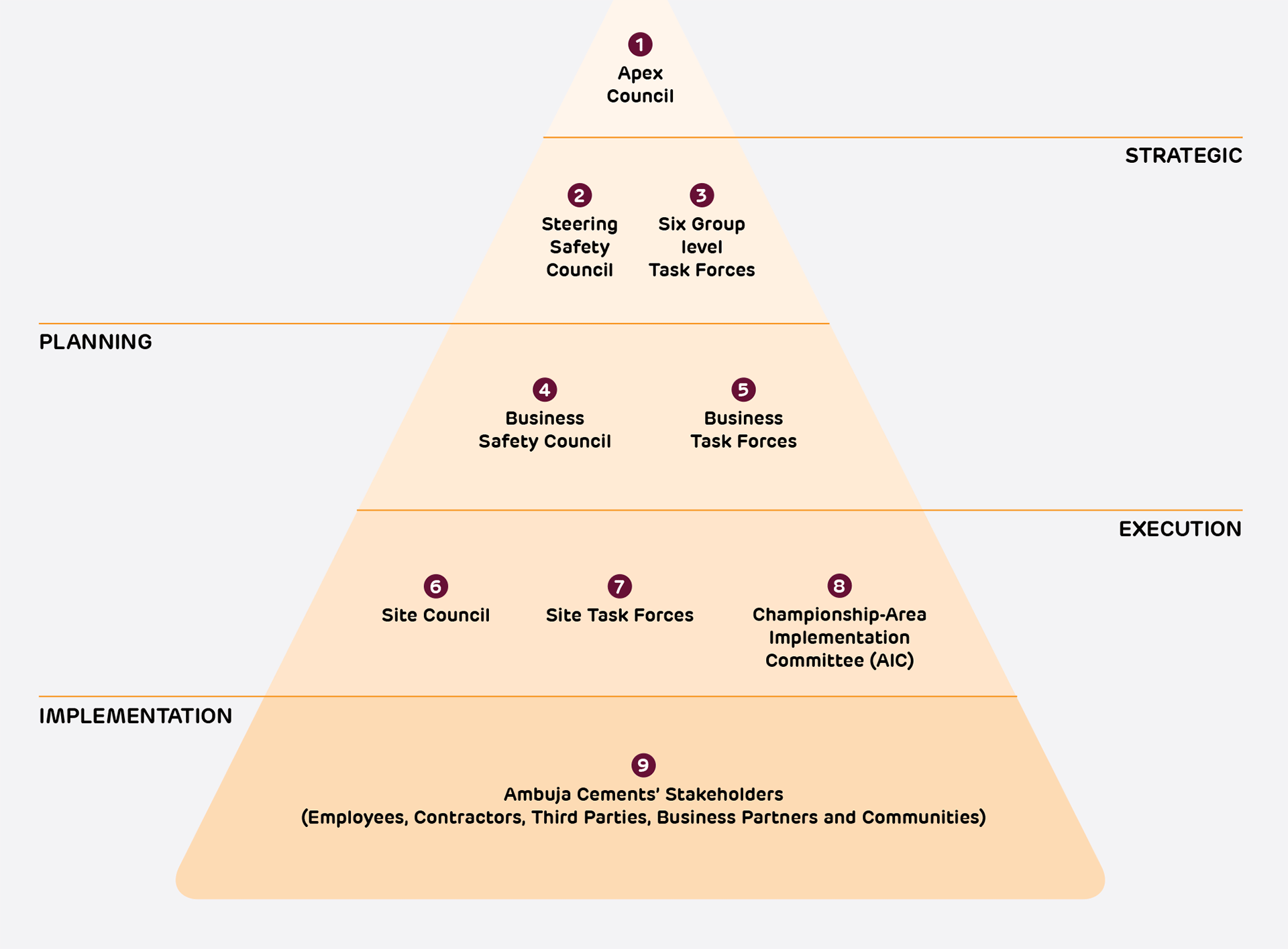 The Corporate Responsibility Committee oversees safety governance, supported by a comprehensive Safety Management System and well-defined roles at the Group level. Safety leadership is provided by the Apex Council, consisting of senior executives, with the Steering Safety Council guiding safety strategy across the business.